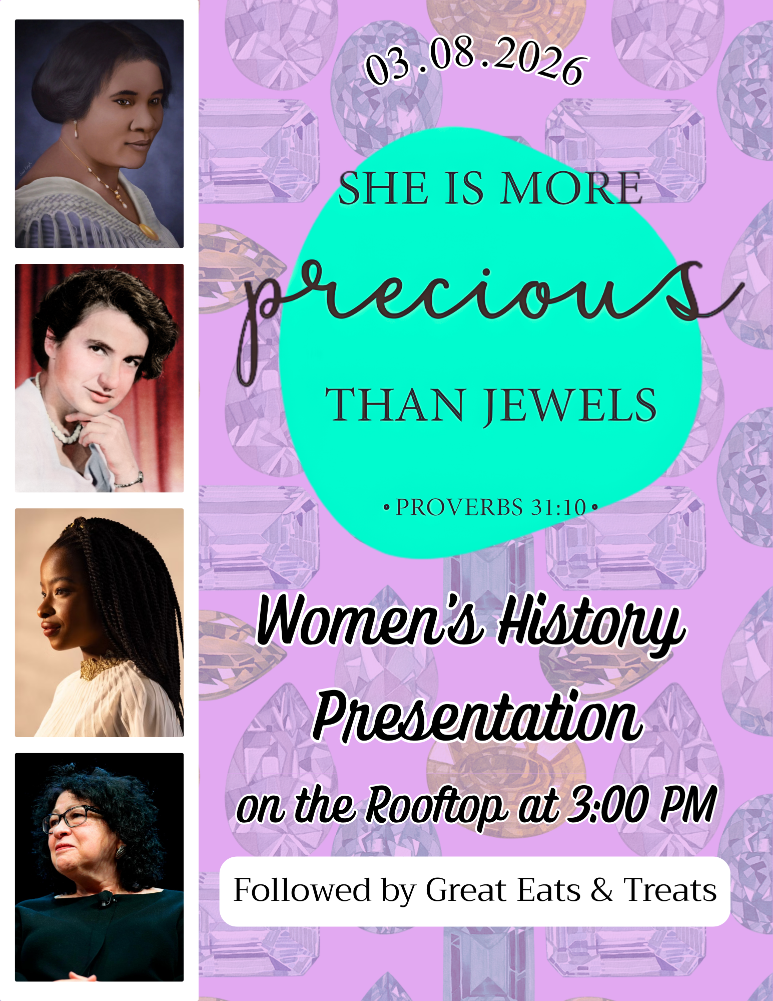 Residents are invited to join us on the rooftop this Sunday March 8th to celebrate Women’s History Month with a lovely presentation and social gathering at 3:00pm